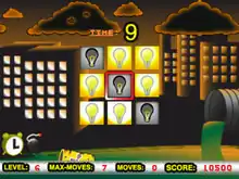 Black Out! is a grid-based puzzle game reminiscent of Tiger Electronics' Lights Out and Parker Brothers' Magic Square from the Merlin handheld electronic game, where the main objective of the player is to turn off all the light bulbs in a 3x3 grid with the lowest amount of moves possible.[1][2] There are ten levels across four stages in total, each one presenting a set light pattern that must be solved to advance into the next level.[1][2] Depending on the difficulty setting, the player has a pre-set move limit and a fixed time limit to solve the puzzle efficiently.[1][2]