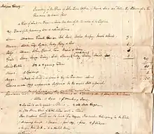Matthew married Amey (Oney) May of Charlotte County in 1774. Matthew died in 1790 and left behind his wife and nine children. An inventory dated November 1790 shows his estate as including 40 slaves, personal belongings, crops, and livestock. Agricultural crops listed in this inventory included "200 barrels corn, crop of tobo. 1790 supposed 15000" pounds. Livestock included 45 cattle and horses, and 13 hogs. Amey May Sims acquired title to a 325-acre tract of land, including "the mansion house". According to Matthew Sims' inventory, the remaining twenty slaves were divided among his children. His son, Matthew, received "1 Negro man slave, Taylor, 1 Negro woman slave, Page, 2 Negro girls, Julia and Hannah". His daughter, Lettie Sims, was bequeathed "1 Negro man slave, Daniel, 1 boy slave, Lott, 1 girl slave, Dorcas". Charles Sims was left "l Negro man slave, Easop, 1 Negro slave girl, Tamer". Nancey Sims was bequeathed "1 Negro man slave, Davie, 1 Negro girl slave, Jeanney". Martricia received "1 Negro man Slave, Toney, 1 Negro woman Slave, Elie, and child, Visay". Oney was bequeathed "1 Negro boy Slave, Harry; 1 Negro girl Slave, Little Nanney; 1 Negro boy Slave, Ceasar". Elizabeth Sims received three slaves, including "l Negro man Slave, Antony, 1 Negro boy Slave, Emanuel, 1 Negro girl Slave, Unity".[8]