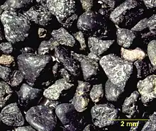 Black sand is sand that is black in color. One type of black sand is a heavy, glossy, partly magnetic mixture of usually fine sands containing minerals such as magnetite, found as part of a placer deposit. Another type of black sand, found on beaches near a volcano, consists of tiny fragments of basalt.