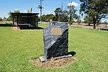 The Black Stump Picnic area at Merriwagga has a waggon and memorial stone (33°49′01″S 145°37′22″E / 33.8170°S 145.6227°E), with an inscription which explains the details of these events.