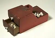 One of the earliest American ballot boxes using ballottas. This ballot box was used by members of the Association of the Oldest Inhabitants of the District of Columbia, a social club.