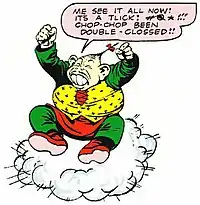 - ↑ Bob Haney (w), Dick Dillin (p). "Target: Big-Eye" Blackhawk #231 (April 1967). DC Comics.
