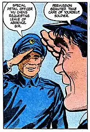 - ↑ Bob Haney (w), Dick Dillin (p). "Operation White Dragon" Blackhawk #203 (December 1964). DC Comics.