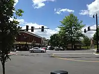 The amount of commercialization in the area began to increase in the mid-1960s. The Corning Glass Works (now called Corning Incorporated), based in upper New York State, opened a manufacturing facility in 1964 that is located south of Blacksburg. The Blacksburg Municipal Building on South Main Street was constructed in 1969.[16] Terrace View apartments, the first large student complex, was built in 1970. The Blacksburg Branch of the Montgomery County Library was opened the same year. Ten years later, it was moved into the facility that used to house the Blacksburg Lumber Company on Draper Road. In 1971, Blacksburg ratified a new charter and LewisGale Hospital Montgomery was built. The University Mall shopping center opened that year as well. In the mid 1970s the Foxridge apartments, an even larger student apartment complex, was built as part of the Hethwood development. During 1981, the Blacksburg Community Center opened. It cost the town $1.2 million to build.[16] By 1988, the New River Valley Mall, located in the neighboring town of Christiansburg, was opened[20] and the Virginia Tech Corporate Research Center had its first ground-breaking ceremony.[18]