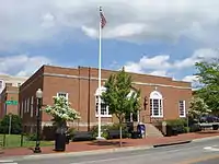 In 1797, William Black laid out a small grid of streets and lots comprising 16 blocks on a portion of his land. The original town was limited to the area bounded by present-day Draper Road, Jackson Street, Wharton Street, and Clay Street.[8] The town logo contains 16 small squares that create a larger square, representing the original 16 square blocks that were a part of Black's design.