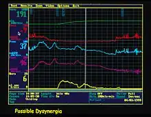 Bladder sphincter dyssynergia (also known as detrusor sphincter dyssynergia (DSD) (the ICS standard terminology agreed 1998)[1] and neurogenic detrusor overactivity (NDO)) is a consequence of a neurological pathology such as spinal injury[2] or multiple sclerosis[3] which disrupts central nervous system regulation of the micturition (urination) reflex resulting in dyscoordination of the detrusor muscles of the bladder and the male or female external urethral sphincter muscles. In normal lower urinary tract function, these two separate muscle structures act in synergistic coordination. But in this neurogenic disorder, the urethral sphincter muscle, instead of relaxing completely during voiding, dyssynergically contracts causing the flow to be interrupted and the bladder pressure to rise.[4]