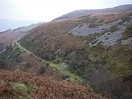 Blaenavon lies at the upper end of the Afon Lwyd valley in South Wales.[2] The World Heritage Site is based on the large area of land that the Blaenavon Company leased in 1789.[1] The site is on the north eastern rim of the South Wales Coalfield.[3] The area is an excellent example of an industrial landscape formed in the late 18th and early 19th centuries by mining and iron making activities.[4] The 3,290 hectares (8,100 acres) site contains the Blaenavon Ironworks and the Big Pit coal mine, surrounded by mines and quarries, manufacturing plant, railways, canal, workers' housing and social infrastructure.[2]