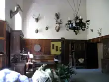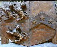 George Kirkham (1525-1581/2), eldest son and heir, who was the builder of the surviving Blagdon manor house, as is evidenced by a datestone inscribed "1567" on the external wall[24] of the great hall. He married Margaret Dennis, a daughter of Sir Thomas Dennis (c. 1477–1561)[25] of Holcombe Burnell, near Exeter in Devon, Sheriff of Devon nine times between 1507/8 to 1553/4 and a Member of Parliament for Devon (apparently a junior branch of Dennis of Orleigh, which used a differenced version of the arms of Dennis of Orleigh). He died without surviving issue, having had a daughter Elizabeth, who died unmarried and was said by Prince to have been a dwarf.[14] His heir was his nephew Sir William Kirkham (died 1623).