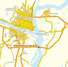The Blagoveshchensk–Heihe Bridge (Russian: мост Благовещенск — Хэйхэ; Chinese: 黑河-布拉戈维申斯克界河公路大桥) is a bridge across the Amur River, connecting the cities of Blagoveshchensk, Russia, and Heihe, China. According to CNN, the construction of the bridge started in 2016 and was completed in late 2019.[1] It was estimated that the bridge cost 18.8 billion rubles.