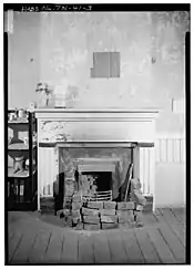 The first floor of the interior contains a storeroom (at the east, or front end), a parlor, and a kitchen. The second story contains two bedrooms, a parlor, and a dining room. The basement contains an apartment similar to the one on the second story. There are no interior stairways, so the second story is accessible only via the side and rear porches, and the basement is accessible through a door adjacent to the rear porch.[6]