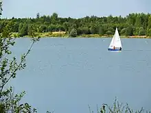 The Blausteinsee Leisure and Recreation Area is an artificial lake north of the Eschweiler municipality in the Aachen district of North Rhine-Westphalia, Germany.[1] Its area is around 100 hectares and depth is 46m. It was created during the regeneration of the Zukunft opencast coal mine in the Rhineland coalfield, made by flooding the pit left by the mine with water. Today, the lake is a holiday area for the surrounding towns. The surface of the lake is 129 metres above sea level and its volume is around 25 million cubic metres. The filling of the lake began in 1994.