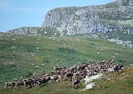 Blefjell is a small mountain range located along the border between Buskerud and Telemark in Norway. It encompasses parts of the five municipalities of Rollag, Flesberg, Kongsberg, Notodden and Tinn. The highest point is Bletoppen at 1,340 metres (4,400 ft) above sea level.[3]