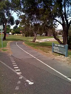 The Blind Creek Trail, in the outer eastern suburbs of Melbourne, in the Australian state of Victoria,[1][2][3] is a shared-use path for cyclists and pedestrians, which follows the Blind Creek from the Dandenong Creek Trail in Wantirna South to the Ringwood - Belgrave Rail Trail in Boronia.