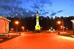 The Blizna V-2 missile launch site was the site of a World War II German V-2 missile firing range.[note 1] Today there is a small museum located in the Park Historyczny Blizna (Historical Park) in Blizna, Poland.[4] After the RAF strategic bombing of the V-2 rocket launch site in Peenemünde, Germany, in August 1943, some of the test and launch facilities were relocated to Blizna in November 1943.[5][6] The first of 139 V-2 launches was carried out from the Blizna launch site on 5 November 1943.[7]
