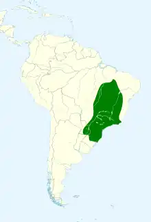 The blond-crested woodpecker's subspecies C. f. intercedens is the more northerly of the two. It is found in western Bahia, Goiás, and Minas Gerais in east-central Brazil. The nominate subspecies is found southeast of it, from southern Bahia to Rio Grande do Sul and into eastern Paraguay and Argentina's Misiones Province. The species inhabits the interior and edges of humid forest and also gallery forest, savanna, caatinga, and orchards.[8]