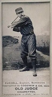 William Aloysius "Blondie" Purcell (born March 16, 1854) was an American Major League Baseball player born in Paterson, New Jersey. He played for nine different major league teams from 1879 to 1890. Purcell played mainly as an outfielder, and he was also a pitcher in 79 games.[1]