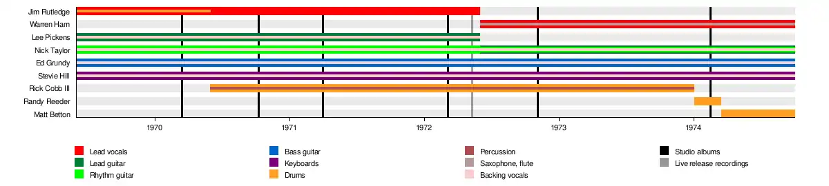 • Warren Ham – lead vocals, saxophone, flute (1972–1974)