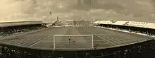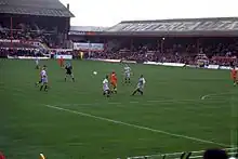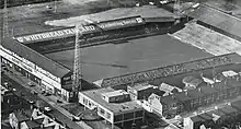 On 13 January 1917, a fire in the West Stand, likely caused by the dressing-room heating system, badly damaged the structure. When the fire brigade arrived, the stand was a blazing inferno with a northerly wind causing the flames to completely destroy the entire southern end, including both the original secretary's office, the boardroom, including club records, many silver cups and a collection of historical photographs that adorned the office. It resulted in a rebuilding programme that eventually saw the ground constructed along the lines that remained for the rest of the century.[5]