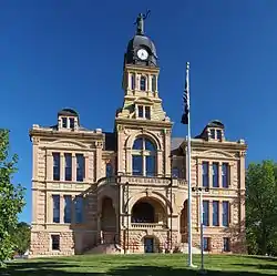 The building, completed in 1889, was the second courthouse in the county. The first courthouse in the county, a 20-by-24 foot one-story stone building, was built in 1857.[2]