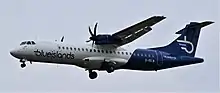 To further supplement its fleet, Blue Islands purchased an ATR 42-320 from Air Atlantique Assistance, entering service on 23 August 2012. Blue Islands announced winter service from Jersey to Chambéry in August 2012, and in October it announced services to Amsterdam and Paris, which would start in February 2013.[17] A further ATR 42-320, registered G-ISLH, entered service in July 2013 and in December 2013 an ATR 72-500, registered G-ISLI, was damp leased from Nordic Aviation Capital to provide extra capacity on the Guernsey to Southampton service. The latter aircraft type is now replacing the ATR 42 fleet. A new ATR 72-500 arrived in October 2016, to replace an ATR 42-320 which was retired. Another ATR 42-320 was sold in 2017, and was replaced by another ATR 72.[18] In October 2018, Blue Islands took delivery a fourth ATR 72-500. This aircraft was the first to be delivered during the Flybe franchise without Flybe colours; it sported a modified version of Blue Islands' original livery with small titles, and a white fuselage with blue engines. The airline's last ATR 42 was retired in 2022, following the delivery of another ATR 72.[19]
