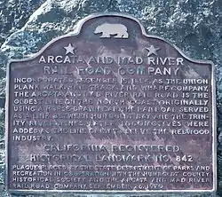 The lumber industry shipped wood down the Arcata and Mad River Railroad. During the 1950s, timber shipped from Blue Lake included from Levitt Brothers own lumberyard and nail factory from which lumber and nails were sent to the four Levittown developments in the eastern U.S.[10]