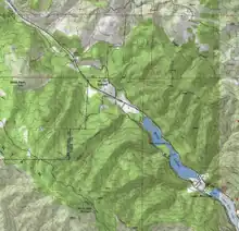 - ↑ A Google terrain map of the region shows State Route 20 runs southwest from Saratoga Springs on the edge of the Clear Lake valley, then turns northwest to run past the Blue Lakes at an elevation of 1,358 feet (414 m) and through the valley that holds Cold Creek in its northwest end. The highway then turns southwest down the Coyote Valley to Lake Mendocino at an elevation of 737.5 feet (224.8 m), which drains into Russian River.[15] The Blue Lakes would have drained along the valley that holds this section of State Route 20 before it was blocked.