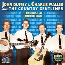 Bluegrass at Carnegie Hall is an album of studio recordings by the progressive bluegrass band The Country Gentlemen, released in 1962 on the Starday label and reissued in 1988.[1] The only thing about this album that has anything to do with Carnegie Hall is the cover photo on the original Starday LP, showing the group on stage (not the photo on the right). Nevertheless, there are many classic tunes on the album from the group's Starday era. As for the actual Carnegie Hall concert, there are six cuts on the Smithsonian Folkways CD "The Country Gentlemen: On the Road"(SFW40133), which include the fine dobro playing of Kenny Haddock.