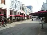 As of June 2015, most of the old shops, many of which were hardware stores, have been replaced with businesses to attract tourists. These include juice bars and coffee shops. Several of these businesses have set up chairs, tables and patio umbrellas on the street. These are all higher quality, made of wood and canvass and of similar style, unlike others typically found in the rest of Haikou, which are plastic and low quality.[2] The establishment of this street is part of an effort to attract visitors to Haikou.