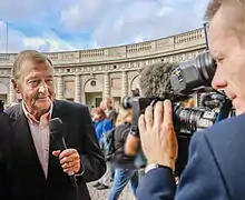 Bo Eric Holmström (18 October 1938 – 12 October 2017[1]) was a Swedish journalist, reporter and author. He worked as a reporter both for SVT and TV4. He was the Swedish reporter covering the Norrmalmstorg robbery in 1973 and the West German Embassy siege in Stockholm in 1975.[2] On 11 September 2003 he was the first reporter to announce in media that Swedish Foreign Minister Anna Lindh had died from injuries sustained after an attack earlier that same day.[3] He was reporting from Karolinska hospital for TV4. In 2007 he was awarded the Stora journalistpriset for his journalism work.[4] In 2015, he was awarded an honorary Kristallen at the Kristallen awards.[5]