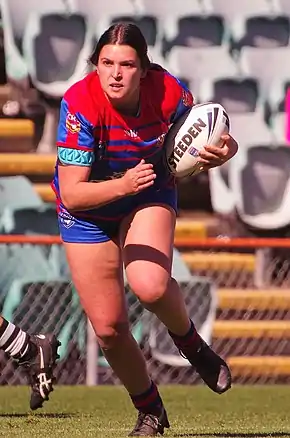 In July 2019, she joined the Sydney Roosters Women NRL Women's Premiership team.[4] In Round 3 of the 2019 NRL Women's season, she made her debut for the Roosters, scoring a try in their 16–24 loss to the St. George Illawarra Dragons Women.[5] On 11 October 2019, she started at centre for the Prime Minister's XIII in their 22–14 win over the Fiji Prime Minister's XIII.[6]