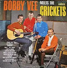 Bobby Vee Meets The Crickets is a cross-over rock and roll album that brings singer Bobby Vee together with the Crickets. It was Vee's 7th album and The Crickets' second release following the departure and subsequent death of their front man, Buddy Holly. The album contains new versions of three songs written by or recorded by Holly—Peggy Sue, Bo Diddley, and Well...All Right—and a host of cover versions of 1950s rock'n'roll songs by artists like Little Richard and Chuck Berry. Originally released as an LP record on July 14, 1962, the album was re-released on CD in 1991, with bonus tracks not featured on the original album.
