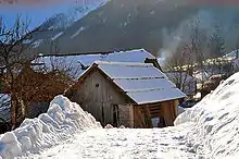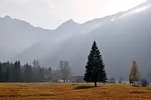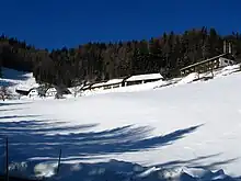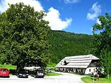 The Bodental (Slovene: Boden, Carinthian Slovene: Póden)[1][2] is a remote mountain valley in the Karawanks in the south of Carinthia, Austria. Located at just over 1,000 metres above sea level, the valley extends southwesterly and can be reached by road or walking trail from the Loibl Pass road. The area is part of the cadastral community of Windisch Bleiberg, and since the beginning of 1973 it has been part of the municipality of Ferlach. The valley is drained via Boden Creek (German: Bodenbach, Slovene: Žabnica),[3] which flows over Tschauko Falls in the Tscheppa Gorge.