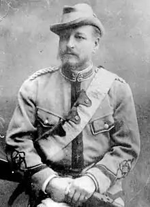 The British historian R.W. Johnson wrote: "Russian conservatives were pro-Boer not only for the usual nationalist, anti-British reasons but because they thought the Boers were like the best sort of Russians – conservative, rural, Christian folk resisting the invasion of their land by foreign (especially Jewish) capitalists."[13] One conservative Moscow newspaper in an editorial stated: "The deep historical meaning of this war is that faith, patriotism . . . the patriarchal family, primordial tribal unity, iron discipline and the complete lack of so-called modern civilisation have . . . become such an invincible force that even the seemingly invincible British have begun to tremble."[13] The Georgian Prince Niko Bagration was in Paris when the war began in October 1899 and despite never having heard of the Transvaal before, recalled thinking "but it felt very much like my motherland and I felt I must protect it."[13] Prince Bagration was greeted in Pretoria by President Paul Kruger of the Transvaal.[13] Yevgeny Maximov, a former officer in the Imperial Russian Army whose career had ended in disgrace after he attempted suicide, volunteered to fight for the Transvaal, in an attempt to extirpate his disgrace.[13] Johnson called Maximov a tragic figure as his dishonorable discharge from the Russian Army owing to his suicide attempt marked him out as a man whose honor could never be redeemed, leading Maximov to volunteer in successive wars in attempts to prove his courage to the world and restore his lost honor.[13] Maximov had previously fought with the Serbs against the Ottomans in 1876-78 and with the Ethiopians against the Italians in 1895–96.[13] Maximov, an excellent horseman and marksman became renowned with the Boers due to his bravery under fire, and was thanked by Kruger in a telegram after the war for showing outstanding courage in combat.[13] Kruger believed that Maximov was representing Nicholas and took him into his confidence, believing that Maximov had the power to make Russia intervene in the war.[13] Some of the Russian volunteers were men of the left like Prince Mikhail Yengalychev, Ivan Zabolotny and Alexander Essen with the latter becoming a Bolshevik who ended his career as the deputy chairman of the Russian State Planning Committee in the 1920s.[13] Left-wing Russians volunteered to join the Boer cause due to their anti-imperialist beliefs.[13]