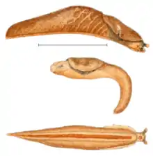 | A 1910 drawing of preserved specimens of Boettgerilla compressa from the original description by Heinrich Simroth | |