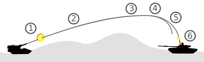 | 2 | The round flies on a parabolic arc, with a range of up to 35 kilometres (21.7 mi) | |