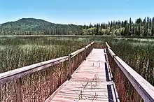 Boggs Lake is managed by the Nature Conservancy and the California Department of Fish and Game. It is 8 miles (13 km) south of Clear Lake and has a small parking area and hiking trail loop. The protective fence and interpretive display boards were installed by the Nature Conservancy.
