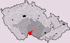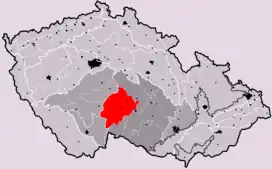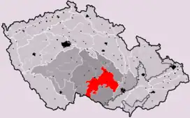 The Bohemian-Moravian Highlands are an extensive and long range of hills and low mountains over 150 kilometres (93 mi) long, which runs in a northeasterly direction across the central part of the Czech Republic from Bohemia to Moravia. This range roughly coincides with modern Vysočina Region.