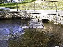 Boiling Springs gets its name from the natural artesian well springs located in and around the town. Boiling Springs ranks seventh in size of springs in the Commonwealth of Pennsylvania. The largest of these springs named "the Bubble" is a 2nd magnitude spring based on its average discharge of around 0.7 cubic meters per second.[5] About 22 million US gallons (83,000,000 L) of water flows per day from a total of 30 springs dotted across approximately 2 acres (8,100 m2).