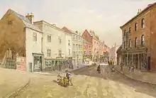 Bold Lane in 1895 - Derby Museum note that the green door on the left used to be an entrance to the Borough Jail.[4]
