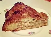 Bolo Fiado, or Bolo Folhado (Sinhala: බොලෝ ෆියාඩෝ), is a Sri Lankan laminated/layer cake. It is made of sweet pastry layers, alternating with a cashew nut, sugar and rose water filling.[1] It has the appearance of a thick Mille-feuille or large Danish pastry.[2][3]
