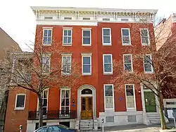 Bolton Hill is a neighborhood in Baltimore, Maryland, with 20 blocks of mostly preserved buildings from the late 19th century. It is listed on the National Register of Historic Places,[2] preserved as a Baltimore City Historic District,[3][4] and included within the boundaries of Baltimore National Heritage Area.[5] The neighborhood is bounded by North Avenue, Mount Royal Avenue, Cathedral Street, Dolphin Street, and Eutaw Place.[3] Bolton Hill is a largely residential neighborhood with three-story row houses with red brick, white marble steps, and high ceilings.[2] There are also larger more ornate originally single-family houses, many houses of worship, parks, monuments, and a few large apartment buildings.[3] Many significant residents have lived in the neighborhood, including F. Scott Fitzgerald, Woodrow Wilson, the Cone sisters, and Florence Rena Sabin.[6]