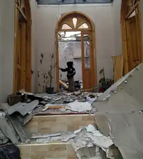 The next day, the Azerbaijani MoD stated that the Armenian forces had shelled Tartar District, starting from the morning.[97] According to the Azerbaijani authorities, the shelling continued into the night.[98] On 9 November, local Azerbaijani journalists reported that the Armenian shelling in Aski Para had completely destroyed 20 houses, and seriously damaged 80 more.[99] The next day, Prosecutor General's Office of Azerbaijan stated that a civilian was wounded in the city of Tartar because of the Armenian shelling at around 00:00.[100] continued at 00:20.[101]