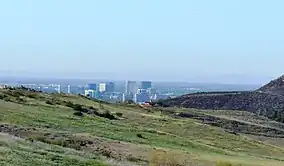 ![]() View from the Bommer Pass Trail within Bommer Canyon toward Costa Mesa, California. On clear days, canyon paths offer views to downtown Los Angeles nearly 40 miles (64 km) away. | |