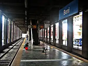 Boni station is a Metro Rail Transit (MRT) station located on the MRT Line 3 (MRT-3) system in Mandaluyong. It is named so due to its proximity to Boni Avenue, which is in turn named after the nickname of Bonifacio Javier, a World War II guerilla leader and former mayor of Mandaluyong.[1] It has several restaurants and shops that surround the station, including a public market located across the train station.