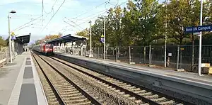 Bonn UN Campus station (German: Haltepunkt Bonn UN Campus) is a railway station in the town of Bonn, North Rhine-Westphalia, Germany. The station lies on the West Rhine Railway. Its name is derived from the UN Campus, Bonn.