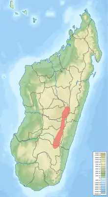 B. popi can be found in the montane rainforest in central Madagascar.[3] Its population is decreasing, and common threats include development, agriculture, mining, logging, fire, and invasive species and diseases.[1]