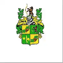 The Booysen coat of arms is green and gold with a bear standing on a helmet holding a bow. The green represents hope, joy, and loyalty in love. The gold represents generosity of wealth and elevation of the mind. The bear represents strength and ferocity in the protection of one's family. The bow represents a readiness for battle. The shape of the shield, with the flat top, rounded bottom and small central point, is the shape of a continental shield, suggesting that the bearer had much land, wealth and had explored.