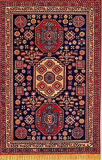 Borchaly (Azerbaijani: Borçalı) describes a sub-category within the Gazakh group of Azerbaijani[1] carpets, even though the region from which they originate is now within Georgia.[2][3] The name of this carpet is associated with the name of the Borchaly region, located to in southeastern Georgia close to the border of Gazakh district, Azerbaijan. Large villages of this region including Gurdlar, Akhurly, Kachagan, Sadakhly (Sashikhly), Dashtepe and Lembeli were once famous for carpet weaving,[4] though in recent decades the art of carpet weaving has almost entirely died out,[5] leaving only two known villages where Borchaly style carpets are still woven: Kosalar and Mughanlo (formerly Iormughanlo).[6] The population of Borchaly (now known as Marneuli) including the above-mentioned villages consists mainly of ethnic Azerbaijanis.[1][7]