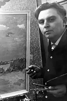 Boris Fedorovich Borzin (other spellings: Borsin, Borzine) was born in Ukraine on 29 December 1923 and died in Saint Petersburg, Russia in 1991. He was a Soviet realism painter, graphic artist, conservator, art historian, author, and a tenured professor of fine art for 30 years at the Herzen State Pedagogical University of Russia (formerly Leningrad State Pedagogical Institute).[1] Borzin was also a veteran of the Great Patriotic War.