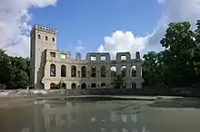 - Bornstedt Church, rebuilt from 1854 by Friedrich August Stüler in an Italian style with a portico and a 34 m (112 ft) tall campanile, including the tomb of Jacob Paul von Gundling; it was finished in 1881/82.